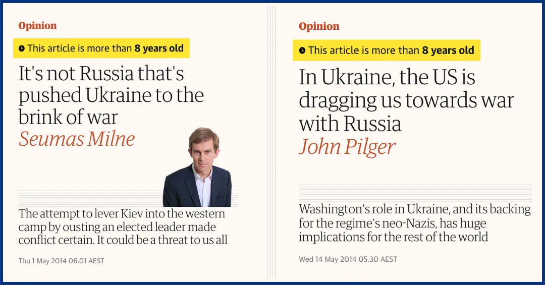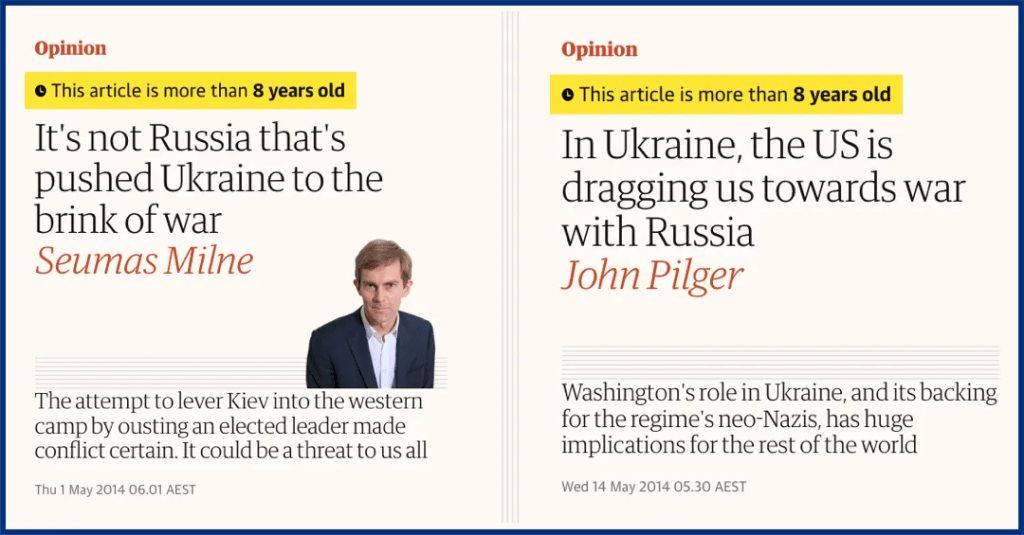 The other day I stumbled across a 2014 opinion piece in The Guardian titled “It’s not Russia that’s pushed Ukraine to the brink of war” by Seumas Milne, who the following year would go on to become the Labour Party’s Executive Director of Strategy and Communications under Jeremy Corbyn.