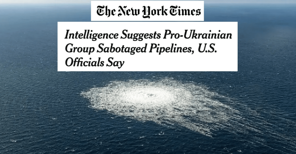 The latest New York Times report on the Nord Stream pipeline bombing is something else. According to NYT’s anonymous US government sources, the pipelines were blown up by a “pro-Ukrainian group” who had no known connections to any military or intelligence agency, but somehow had all the information, skills, diving equipment and military explosives necessary to carry out such an attack.