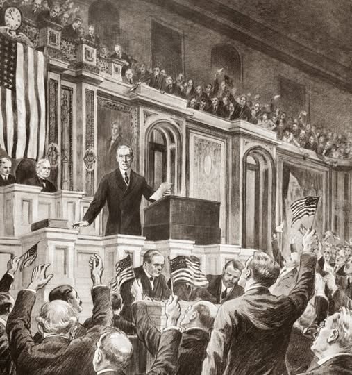 When the United States declared war on Germany following strong majority votes in both houses of Congress and the impassioned speech of President Woodrow Wilson to a joint session on April 2, 1917, he asserted that America must fight in the European war “to make the world safe for democracy.” This was a mere five months after Wilson had won re-election in 1916 via a slogan of “He kept us out of war.” 100 years later, though, there’s still no clearly-enunciated explanation of what it means to create safety for democracy. Later history would prove, however, that this goal — whatever it meant — was most certainly not achieved by the victorious Entente or their associated power and late entrant, the United States.
